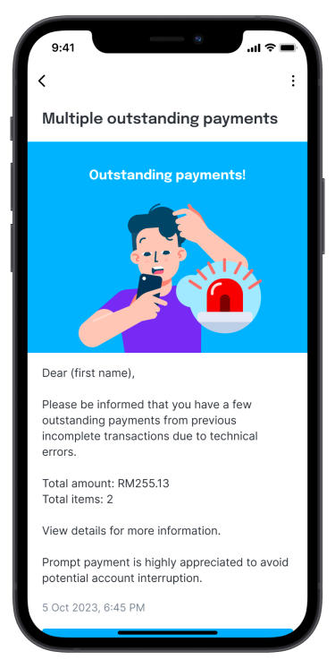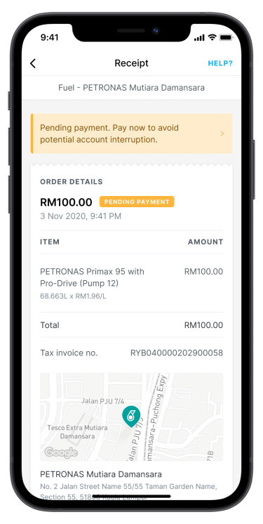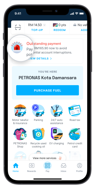 You can check your outstanding payments by tapping the outstanding payment pop-up with the red alert icon.