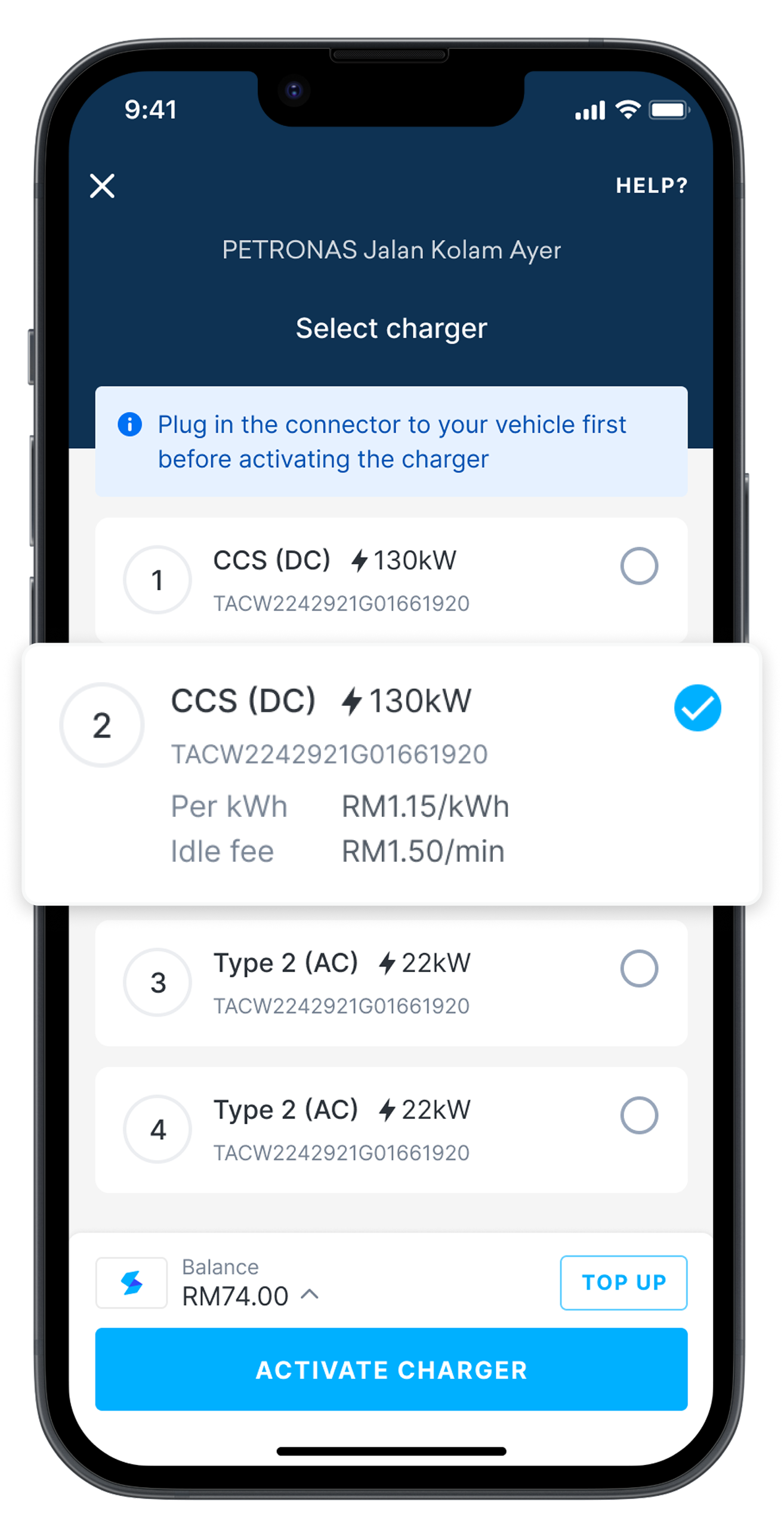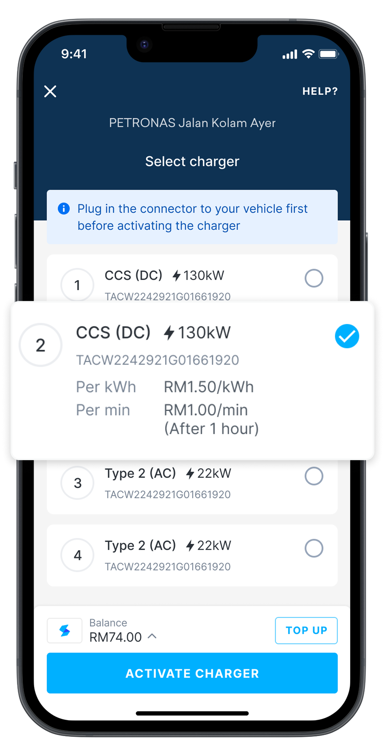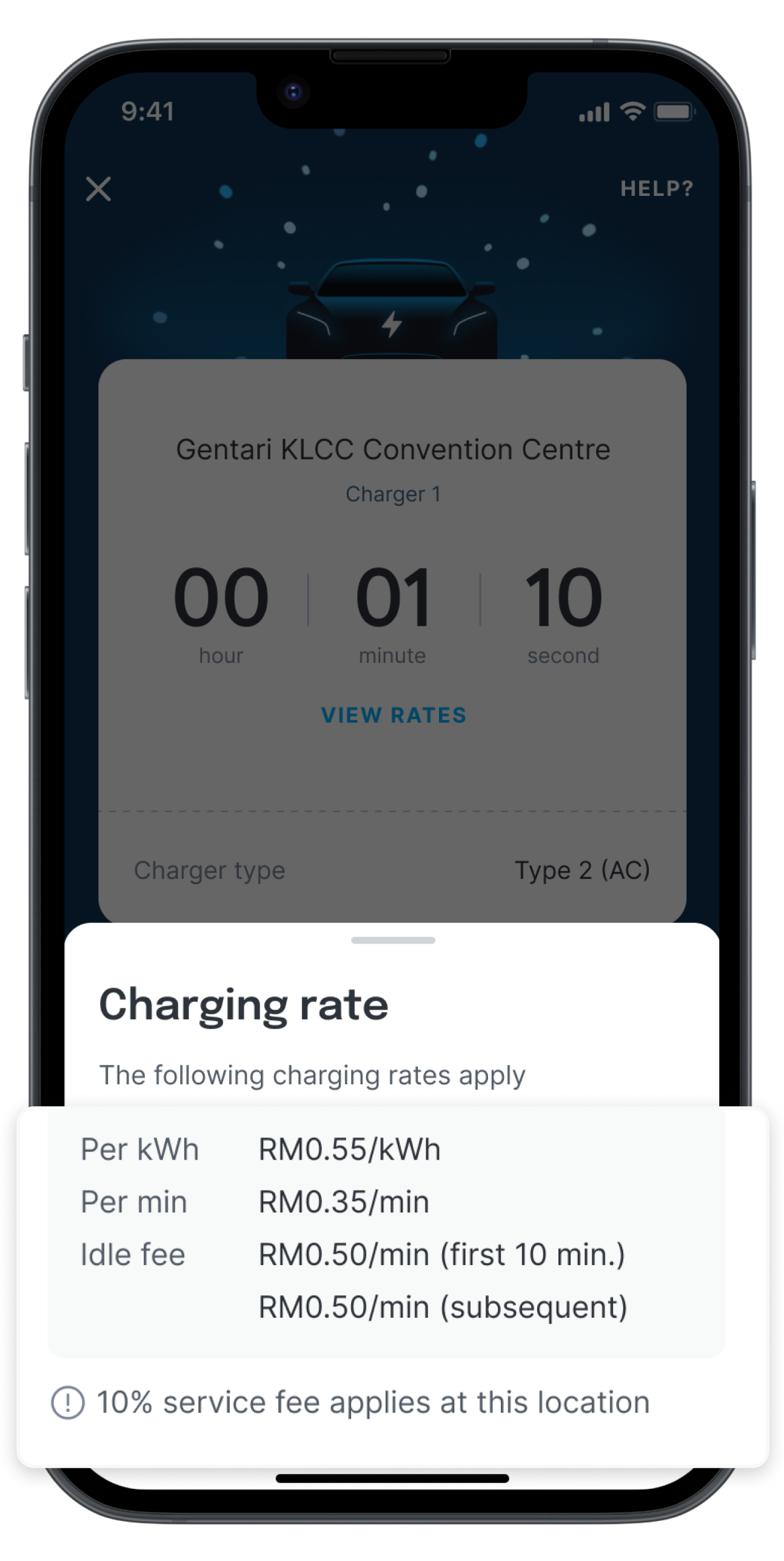 | AC charger | RM1.00/min after 4 hours | RM 0.50/min after 20 minutes grace period once charging stops. |