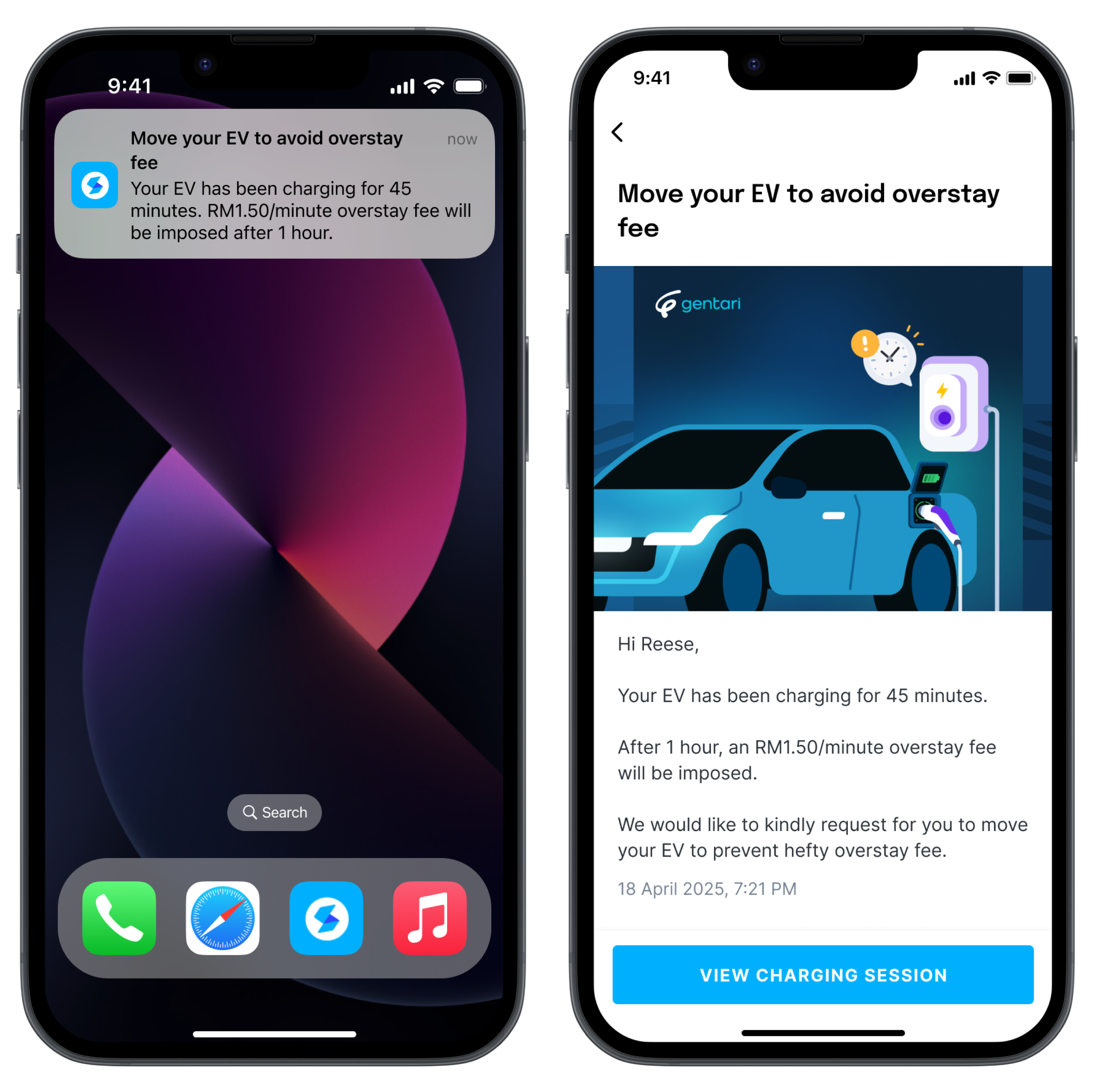 Overstay fees are applied after a specific duration (set by the Charge Point Operators).